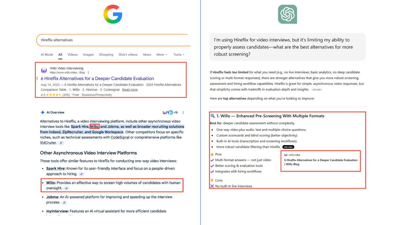 This bottom-funnel approach drives visibility across both traditional search (Google) and LLMs (ChatGPT). Product roundups were cited in 51.39% of software-related prompts based on an analysis of 750 queries across ChatGPT.